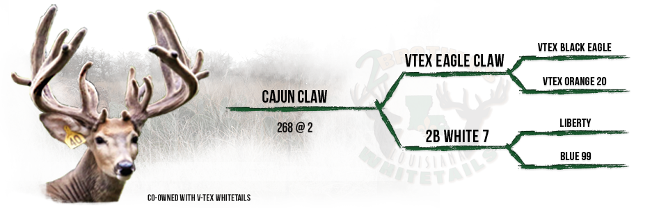 Cajun Claw Cajun Claw reflects Eagle Claw and looks to be twin to his sire. He's over 260@2 with long tines a great look and heavy mass he should be huge @ 3