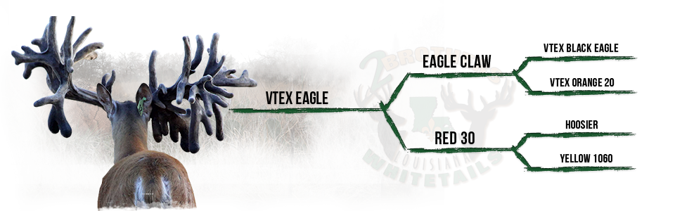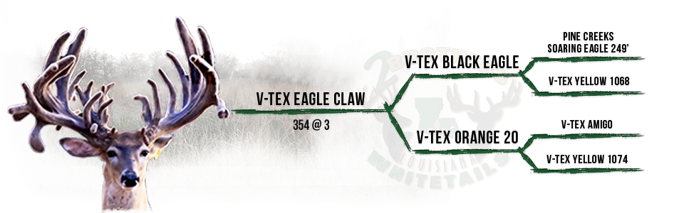 V-Tex Eagle Claw at 3 scored 354 , at 2 scored 290, at 1 years old scored 200 and he has proven to be an AWESOME SIRE. His yearling bucks this year were 100% all outstanding. He is among our most proven producers.